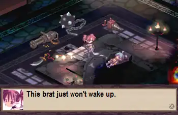 - In the opening to Disgaea: Hour of Darkness, demoness Etna awakens Prince Laharl by smacking him with a number of weapons, and is just about to shoot him when he finally wakes up. From a two-year nap. Talk about a Heavy Sleeper...