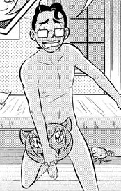 - Episode 11. Taro does it after Ryuuka intrudes into his bath area while he's naked.