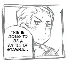 - This strip has a bunch of German states bickering with each other, in a way similar to the countries in the world meeting from the first episode, with a preteen Holy Rome trying to calm them in a way similar to Germany. Then he starts to cough Blood From the Mouth and collapses in a worried Hungary's arms from exhaustion.
