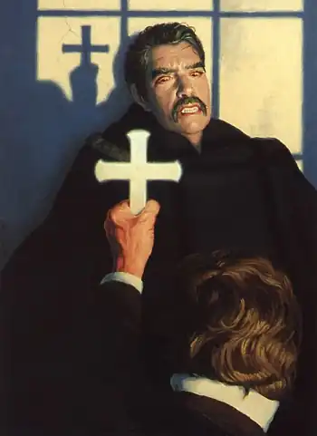 - A slight variant is used in Marvel Comics with their vampires, in that a given holy symbol must have faith behind it, as in the faith of the person using the holy symbol is channeled through it. In one memorable exchange, Wolverine tries to use an impromptu cross to force Dracula to back off, who replies with something to the effect of "You idiot, you don't believe, that can't hurt me." Cue Nightcrawler, a devout Catholic, who jumps in and declares, brandishing a cross, "But I DO believe!" And Drac does the usual fall back, hissing schtick.