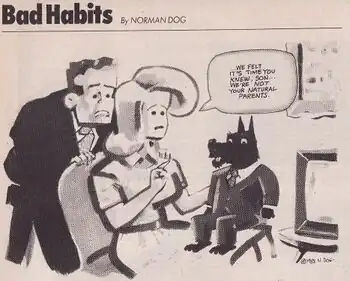 - This Bad Habits strip. The parents decided to break the ice now with their son who is a literal dog. Therefore his parents are humans, who can't give birth to dogs.