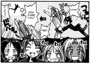 - Happens in Maji de Watashi ni Koi Shinasai! a couple of times, such as when a joke choice involving Miyako is chosen.