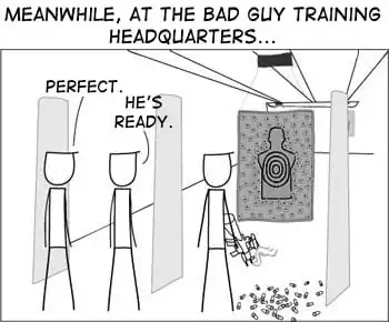 - This trope is actually averted fairly often when civilians use firearms to protect themselves. Civilians who shoot in self defense both tend to hit their target more frequently than the police do, as well as being five times less likely to shoot the wrong person by mistake!