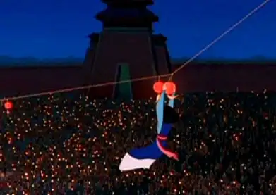 - In Mulan, the heroine uses a string of lanterns to zip down from the roof.