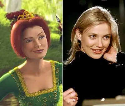 - Inverted in the German dubbing, where Fiona was voiced by Esther Schweins, who arguably looks even more like Fiona's human form than Diaz.