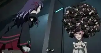Kiddy Girl-AND is a 2009 Spin-Off of the popular series Kiddy Grade. The series opens with the main characters of the first series make a brief cameo before being ambiguously vaporized trying to save the universe from a vaguely established threat. After this bit of extreme closure the show jumps leads to a new pairing and takes a sharp turn for the absurd. The new main characters are Ascoeur, a slightly unhinged waitress, and her unflappable partner, Q-feuille, who are training to become ES members. Thus begins a self-parodying romp that feels like a permanent day at the bizzaro in the Kiddy Grade universe full of Panty Shots, swapped voice actors, mecha-dragons armed with light sabers, and pudding. Grab your popcorn, recite the troper's prayer three times, and get ready for the Kiddy Girl experience.