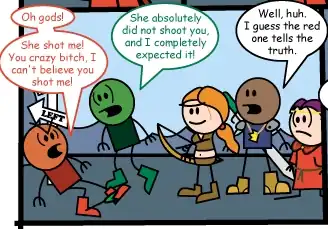 - In Episode 327 of The Order of the Stick, this is the Test of the Mind the Order goes through to get to the Oracle of Sunken Valley (which prompts Roy to remark "that's the last nail in the coffin for the hope that these Tests would be even remotely original"). As shown in the page image, Haley solves it by shooting one of the guards, then noting that the guard she shot is screaming "you shot me!" while the other guard insists "she totally didn't shoot you". The next time Haley passes through, the guards remember her and hastily direct her to the correct path before she can do anything. Haley doesn't understand why, because the Oracle's memory charm means nobody remembers anything that happens in the valley except for the answer he gives them.