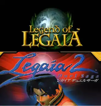 Legend of Legaia is a two game Role-Playing Game series commissioned by Sony Computer Entertainment. The first was developed by Contrail, with its follow-up, Legaia II: Duel Saga, moving to the PlayStation 2 and developed by Prokion. Despite similarities in gameplay and some character designs, they have next to nothing to do with each other.