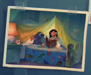- The final photo at the end of the first film: Rather than it only being Lilo, Nani and their deceased parents, another photo is partly overlapping it now, so it looks like Stitch is sitting with them.