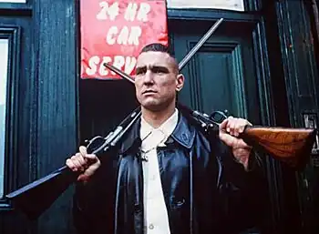 - Stupid Crooks: Just about every character in Lock, Stock and Two Smoking Barrels qualifies one way or another. The film's tagline is even "A Disgrace to Criminals Everywhere." However, special note has got to be given to Dean and Gary, who are instructed by Barry the Baptist to retrieve antique shotguns from an estate home and keep anything else they can carry for themselves. Even in a mansion decorated with numerous expensive antiques, they rationalize that "old" must mean "worthless" (among other boneheaded decisions).