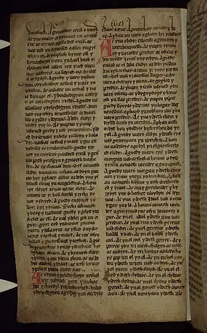 - All There in the Manual: The Mabinogion is just one part of a much larger collection of epic prose and poetry spanning several centuries of Welsh culture. Events that seem out of nowhere, like the Giant Claw, are explained in other tales, many of which are sadly lost. For some light background reading, check out traditional Welsh Law and the Trioedd Ynys Prydein ("Triads of the Island of Britain").