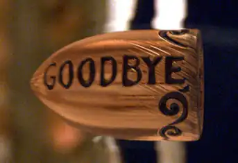 - Wanted: In the trailer, Angelina Jolie is shown firing a bullet that says "Good Bye" written on it. Which was more a message to Wesley than to the ones that it hit. In fact, in the same film, there is an invoked aversion to the trope, with a character whose bullets had a break-away outer casing to prevent the gun from leaving any identifying marks at all on them. When one of these bullets fails to separate from the casing it ends up playing the trope straight by making the bullet even easier to trace than a normal one would be.
