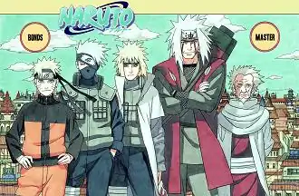- Naruto, as pictured above: The First and Second Hokages (not pictured) → The Third Hokage → Jiraiya → the Fourth Hokage → Kakashi → Naruto