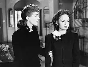 Mildred Pierce (Joan Crawford) is a typical middle-class housewife in suburbia. Bert (Bruce Bennett) is her recently unemployed husband, and they have two spoiled daughters--preteen Kay (Jo Ann Marlowe) and teenaged Veda (Ann Blyth). Bert is against Mildred's parenting style, which he calls "buying them love", but Mildred sees it as protecting them. After fighting over this and Mildred's claims that he has been cheating on her, Bert decides to leave. Mildred rebuilds her life by becoming a waitress and eventually owner of a successful restaurant (with money borrowed from callow heel Wally (Jack Carson), though Veda sees the work as degrading. Mildred does anything she can to impress Veda, but the girl insists on regarding her mother as "a common frump whose father lived over a grocery store and whose mother took in washing."