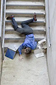 May lead to Death by Falling Over, both in serious and funny contexts, and also in real life. This trope is one reason for a Staircase Tumble, but not the only one.