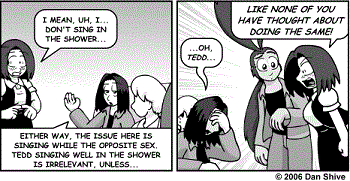 - Tedd of El Goonish Shive uses his ultrapowerful transformation gun to throw a party for his girlfriend and switch genders so that he can cook.