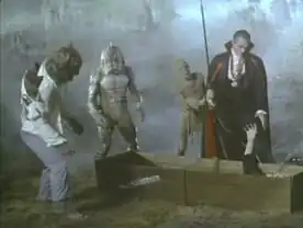 - ↑ Vampire, Werewolf, Frankenstein's Monster, plus Mad Scientist and The Igor