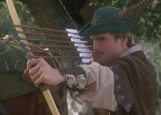 - The Robin Hood: Men in Tights example parodies (of course) Robin Hood: Prince of Thieves, where Kevin Costner's American Robin Hood shoots two at once in one scene near the end.