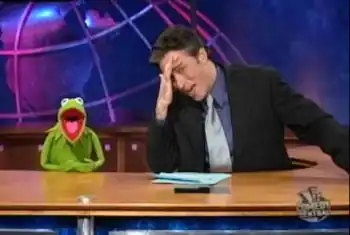 - Years earlier, on The Daily Show, Jon Stewart had Kermit as a guest and, later, Miss Piggy. Both interviews had awkward moments, with Stewart self-consciously lampshading the fact that he was interacting with a puppet, but he did get in some good lines.