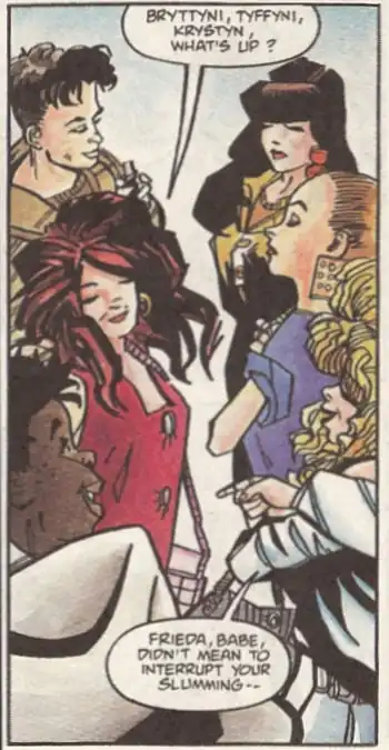- Static had to deal with a trio of truly invincible foes - Bryttyni, Tyffyni, and Krystyn, aka The Insufferable Y-Wymyn! (OK, so they were just "the popular girls" at his school, but they really were insufferable!) [1] Amusingly, in the same issue, Virgil also meets a young superhuman named "Funyl," but does not remark on that name.