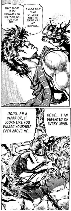 • Wham from JoJo's Bizarre Adventure. He's the only one of his group who has any semblance of a code of honor when it comes to combat and the only one to end up sharing mutual respect with Joseph Joestar.
