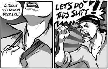 Exactly What It Says on the Tin: someone wearing a necktie around the head as an improvised Hachimaki.