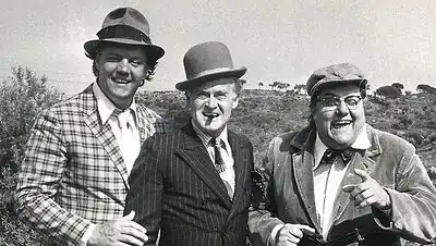 Olsen Banden (English: The Olsen Gang) is a series of Danish crime comedy movies revolving around Egon Olsen and his gang and their (mostly unsuccessful) crimes. The series consists of 14 movies (the first is from 1968 and the last from 1998). Around the time of the fourth movie, Egon started to commit his burglaries using highly unusual plans, involving creative use of everyday items, as well as social engineering by playing on broad stereotypes. These plans would become the most the defining and popular trait of the series. At the same time, a significant amount of social and political commentary was introduced. In a clear criticism of the capitalistic society, the number of Corrupt Corporate Executives, as well as impoverished and alcoholic characters, rose dramatically.