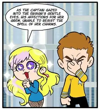 - In the episode of Futurama parodying Star Trek fandom, they produce an episode of Star Trek based on an alien energy cloud's fanscript, wherein members of the regular cast fall in love with and are overwhelmed with admiration for the alien energy cloud.