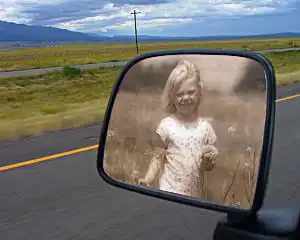 For references to the warning "Objects in mirror are closer than they appear", see Closer Than They Appear. A popular choice for a Break Up Song or other "goodbye song." Don't be surprised to hear a rhyme with "nearer" or "clearer."