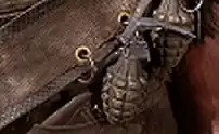 The pin is pulled from a grenade on a grenade belt, causing the wearer and anyone in the immediate vicinity to explode. It can be used to elaborately kill a tooled-up enemy or as a makeshift suicide belt. Expect it to be used on a nearly triumphant enemy leading to a cathartic Oh Crap moment for the villain before he explodes. A subtrope of Why Am I Ticking?