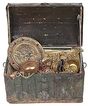 In media the goal of every Pirate is to Plunder shipping for the large wooden chests overflowing with gold, jewels and other valuable trinkets invariably carried by every vessel on the high seas. Mundane cargoes carried in the ships' holds are completely ignored as cackling buccaneers make off with their ill-gotten riches, which they then buried or hid in a cave on a remote island, with only a Treasure Map to remind them of the location.