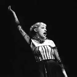 Interpretations of the poem tend to fall into two categories: the Jenny character is either a total angel who brings a much-needed social revolution, or a morally ambiguous Villain Protagonist whose actions should be sharply criticized. Some adaptations additionally show Jenny as a whore or a sex slave -- this is because the American version of The Threepenny Opera combined the characters of the Pirate Jenny and Jenny the whore, played by Miss Lotte Lenya (pictured above).