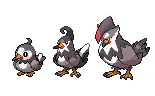 Sinnoh's regional bird. The Starly family is a three-staged family, much like the Pidgey family, but it proves itself to be far stronger. Gaining access to a number of powerful attacks such as Brave Bird and even more unusually, Close Combat, a fighting type move which effectively covers its weakness to Rock, Ice and Steel types, which most of his feathered brethern have problems with.