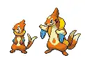 - Suspiciously Similar Substitute: Has the same elemental combination with the Generation III Fire starter (Fire/Fighting). Both starter families also have Glass Cannon stats.