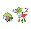 This tiny creature resembles a hedgehog but instead of a coat of spines, it has tufts of soft vibrant grass and two pink flowers on both sides of its ears. It is a timid Pokémon that is rarely ever seen by humans, but where it is found, lush green meadows filled with all sorts of wild flowers are said to be there. It has a special kind of reaction to a certain flower known as the Gracidea Flower, which is commonly given as a sign of gratitude. The pollen of said flower allows it to transform and fly freely. It then makes it way towards other remote meadows.