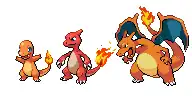 Charmander is a bipedal, orange, lizard-like creature with a flame on the tip of its tail. It first evolves into Charmeleon, a more feral version of itself with red coloring and a horn on the top of its head - when it evolves into Charizard, it regains its original color and grows wings as the single horn becomes a pair. The Charmander line is the first Fire-type and single-type Pokémon in National Dex order, as well as the first to change its type upon evolution. As an evolutionary line of offensive-oriented fighters, they have some crippling weaknesses due to their typing, but may be able to take down an opponent before they can exploit its weaknesses.