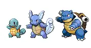 Squirtle, Wartortle, and Blastoise (Zenigame, Kameil, and Kamex)