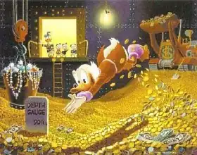 - More than a few Harry Potter fics have Harry look longingly at the piles of gold in his vault at Gringotts and imagine diving into them like Scrooge McDuck. In some, like Modest, Too by Jeconais, he actually tries it, and finds it doesn't quite work like in the comics. In at least one, he finds out the Purebloods actually have a spell to make it possible.