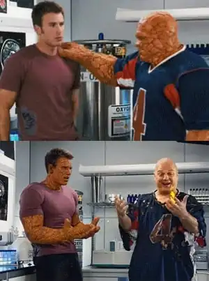 - This arises as a temporary side effect of the Silver Surfer's energy aura on the Fantastic Four in the movie sequel Rise of the Silver Surfer. Whenever Johnny touches one of the other heroes, they swap powers with him (this somehow even includes instantly transforming Ben back into his human form). Near the end, Johnny ends up copying all their powers to face down Doctor Doom with their combined might.