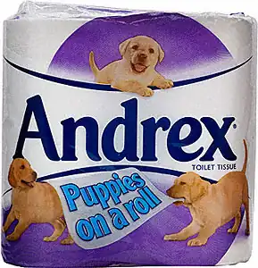 - Shown above: The puppy for Andrex toilet tissue in the UK. Sold in the U.S. as Kleenex Cottonelle.