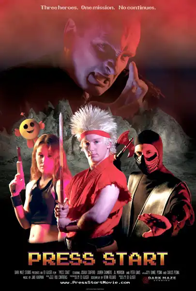 It chronicles the adventures of Zack Nimbus, the 'Chosen One', Lin-Ku, an overly violent Ninja, and Sam, a woman warrior in a spacesuit. They set out to find the three ancient relics and battle The Empire ruled by the nefarious Count Nefarious Vile and they spoof more video games than you can count along the way. Featuring special appearances by game actors Daniel and Carlos Pesina (Mortal Kombat) and music by videogame composer Jake Kaufman (Contra 4). Made on a budget described as "spare change placed in a mayo jar," the film was well received by many video game websites. It even spawned an Animated Adaptation series which premiered on That Guy With The Glasses, and a sequel, Press Start 2 Continue was released in March 11 2011.