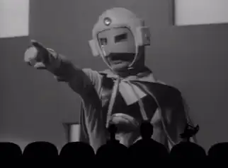 Prince of Space is a 1959 film, edited into existence using footage from two earlier Japanese movies, Planet Prince and Planet Prince - The Terrifying Spaceship which may explain why the plot is a bit wonky. The films were in turn adapted by Toei from a live-action television series of the same name, though with many differences such as a new costume for the main character. The original TV series was a follow up to the extremely popular Moonlight Mask superhero series, though it also borrowed liberally from the Super Giant film serials of the time. The television series even had the main character wearing a costume identical to Super Giant. The Prince of Space character is somewhat iconic in his home country. The two films actually retell a story arc from the television series featuring the Phantom of Krankor.