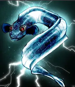 - World of Warcraft posesses a few eel-type monsters in Zangarmarsh that have (rather weak) electric powers.