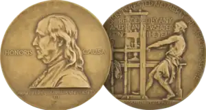 The Pulitzer Prize is an award best known for being awarded for exemplary journalism, though it is also awarded for achievements in other media such as music. The award was established through the will of American publisher Joseph Pulitzer. According to the Columbia Journalism School, Pulitzer did this as a means of combating Strawman News Media tactics after his own experience in perpetuating Yellow Journalism made him realize the damage such press could do. The award medal itself is a round medal of gold featuring Benjamin Franklin.