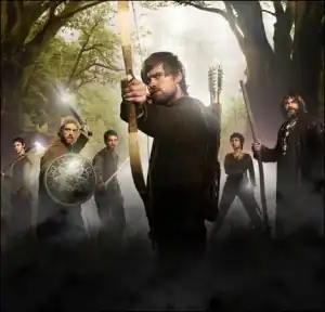 2006-2009 British adaptation of the Robin Hood legend, with Jonas Armstrong playing the title character. The show made some interesting changes to the legend. Friar Tuck was omitted for the first two seasons, and when he appeared in Series 3, he was turned into a Black warrior priest. Marian was not referred to as "Maid" and became something of an Action Girl in her "Nightwatchman" Secret Identity. The Merry Men (which included a Saracen Woman) were not referred to as such, being only called "the outlaws". Green tights were conspicuous by their absence.