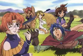 A slapstick comedy set in the world of the ultra-serious high fantasy drama Record of Lodoss War, (Mahou Senshi Riui) has fun playing against type with the tropes of the fantasy genre. Lodoss's roots in Dungeons and Dragons are just as clear here as they are in the original series, with the stereotypical character classes – who don't always act anything like you would expect they should.[1]
