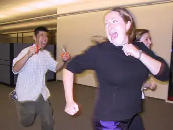 • The Sims 2 had a downloadable object that was a large pair of scissors. If you forced the Sim to run with them, he would be killed.