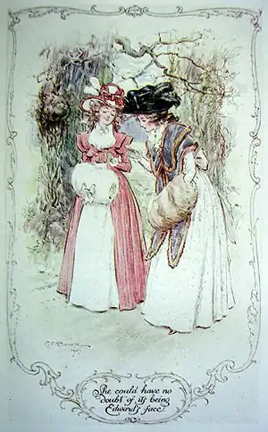 - Not What It Looks Like: Colonel Brandon approaches Elinor with a proposition -- since Edward, freshly disinherited for being engaged to Lucy, needs to make a living, the Colonel wants to offer him the position of rector in his home parish, and would like Elinor to act as intermediary since the men have never met. Mrs. Jennings misunderstands what little she overhears, and thinks that the Colonel has proposed marriage to Elinor. Several pages later, the discrepancy is clarified, and both women are considerably amused by it.