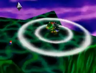 - Donkey Kong 64: Army Dillo and the boss of Gloomy Galleon (red/jump and blue/outrun, respectively); the Kasplats have shockwaves color-coded to whose blueprint piece they guard; even the Kongs themselves can do it (without the jumping part) once you've learned how.