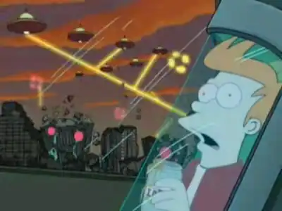 - In the first episode of Futurama, Fry is accidentally trapped in a stasis capsule for nearly a thousand years, and sleeps through at least two apocalypses and a period of reconstruction resulting in a far future that's a lot like the present, but with robots and spaceships.